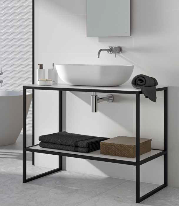 photos: ZE furniture structures, made to measure by Zenon and LOOK, a modernist freestanding bathtub by Knief. Both brands are represented by MRCD.